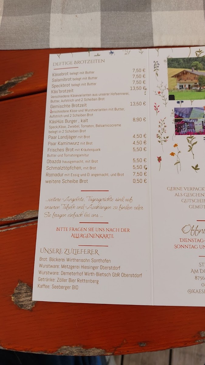 Introducing the Menu: At Käshüs - Germany, nestled in the picturesque Oberstdorf, you'll discover a charming café experience that celebrates regional flavors. The menu emphasizes quality, offering a delightful array of dishes centered around local ingredients. The cheese platter, a standout feature, is plentiful and designed for sharing or savoring solo, showcasing the finest from nearby farms. Visitors rave about the self-baked cakes, crafted from wholesome spelt flour, which add a sweet touch to any visit.